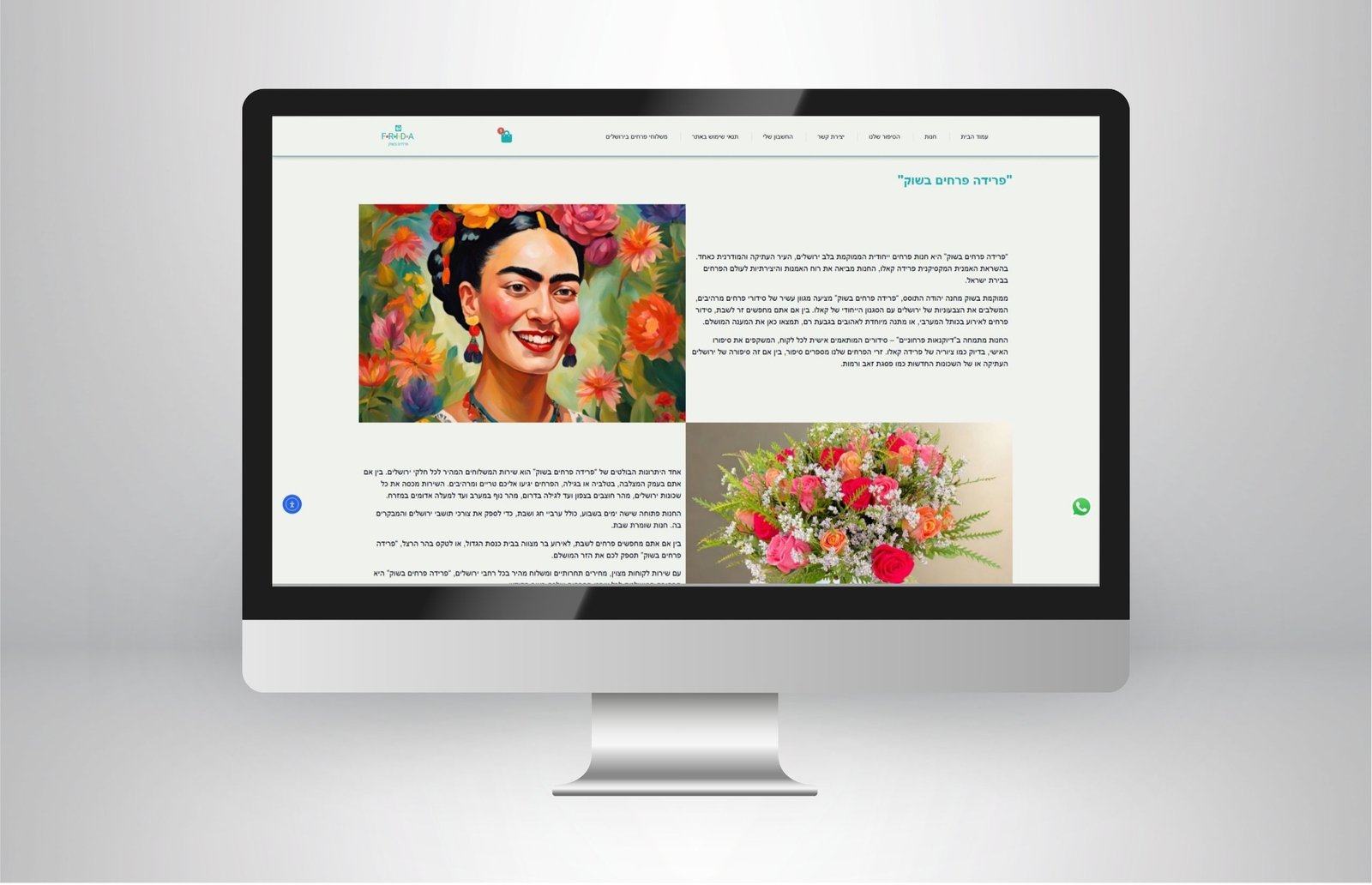 We created a custom website for Frida, a leading flower shop in Jerusalem specialising in personalised floral arrangements. Using WordPress, Elementor, and Crocoblock, the site was designed to beautifully showcase their unique “flower portraits” and wide product range while ensuring an intuitive user experience. Our SEO efforts enhanced the shop’s online visibility, helping attract more customers and supporting their strong reputation for quality and creativity in floral design.